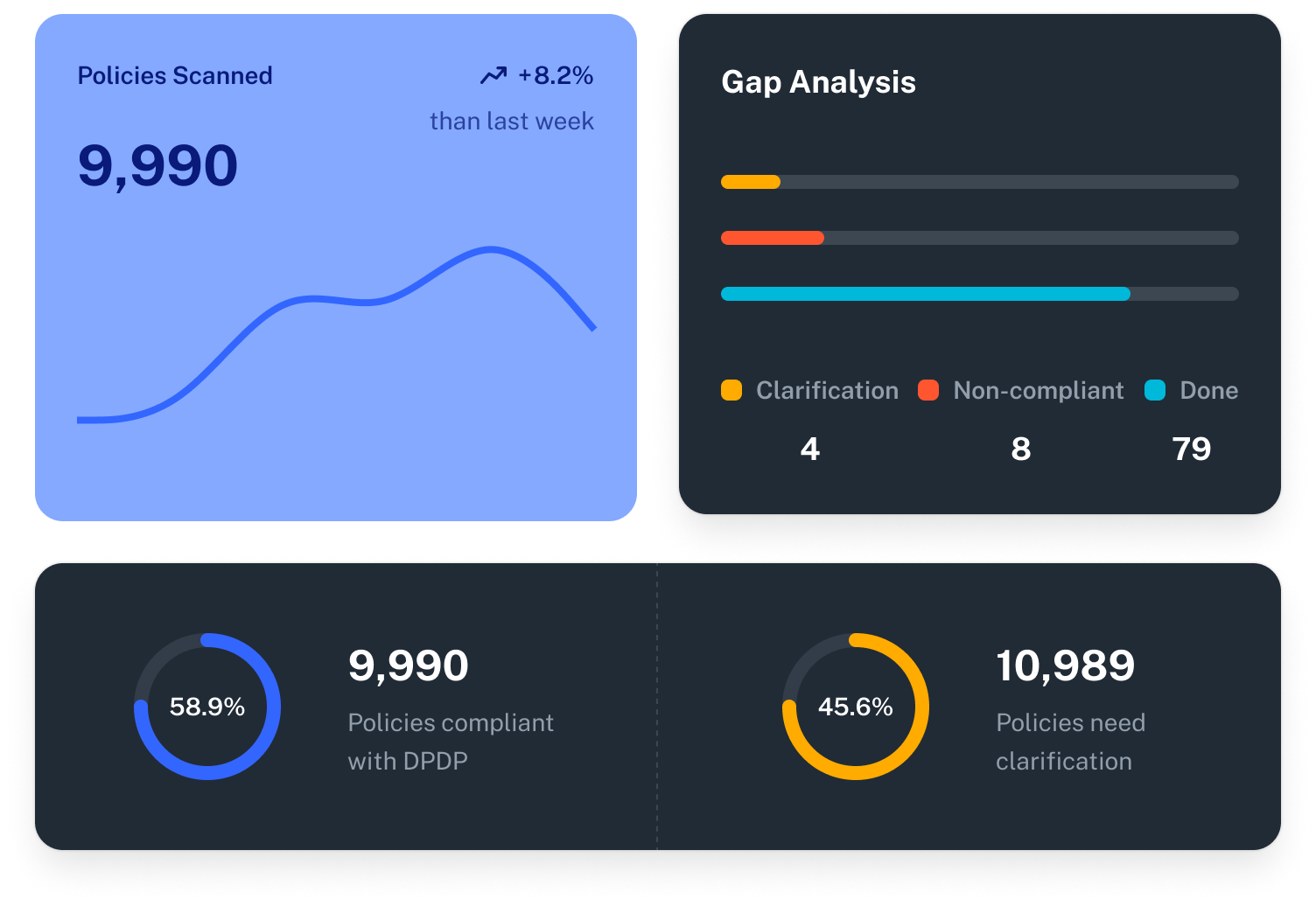 Conduct Al-powered assessments, track privacy KPls through interactive dashboards and maintain a compliant privacy posture amidst evolving business and regulatory needs.